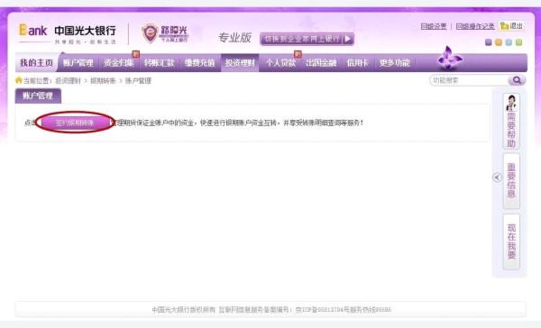 4、點擊“投資理(lǐ)财”,下拉菜單點在“銀期轉賬”,點擊“賬戶管理(lǐ)”,如下圖。