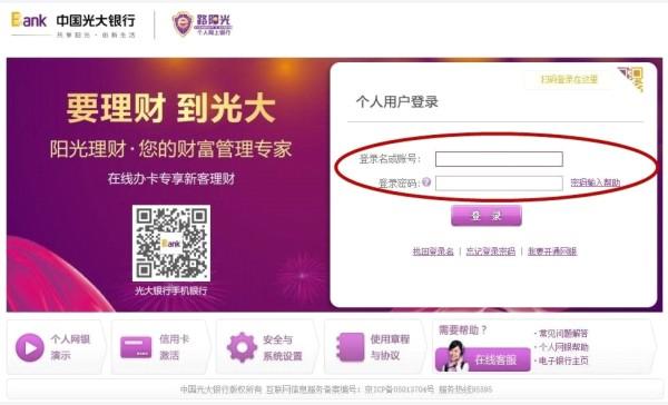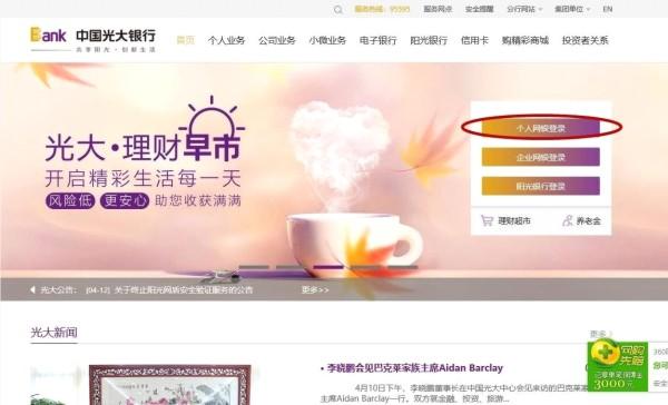 1、 打開中(zhōng)國(guó)光大銀行官方網站首頁(yè),點擊“個人網銀登錄”,如下圖